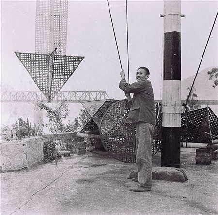 现在使用的信号旗是复合板材料的。过去的信号旗又是什么样子?在小南海木质台房里,陈列着当时的信号旗,是用竹篾编制的。“用竹篾编制成各种形状,涂上不同颜色,代表不同信号。”梁永志介绍,此类信号旗从1915年万州狐滩第一座信号台就开始使用,到2008年后才逐步被复合板等材质信号旗替代,有近百年历史。